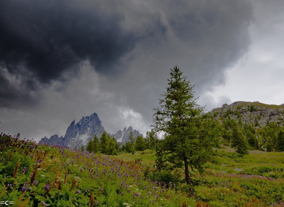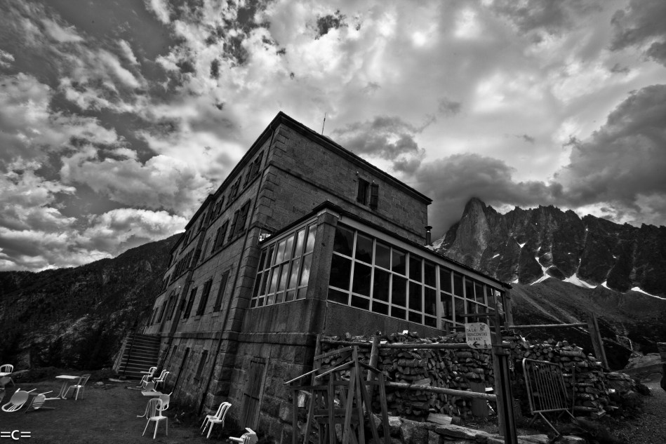 My previous post was a close up on the dru with Ueli steck and Jon Griffith climbing. This time the dru is in the background far away with hotel Montenver in the foreground.