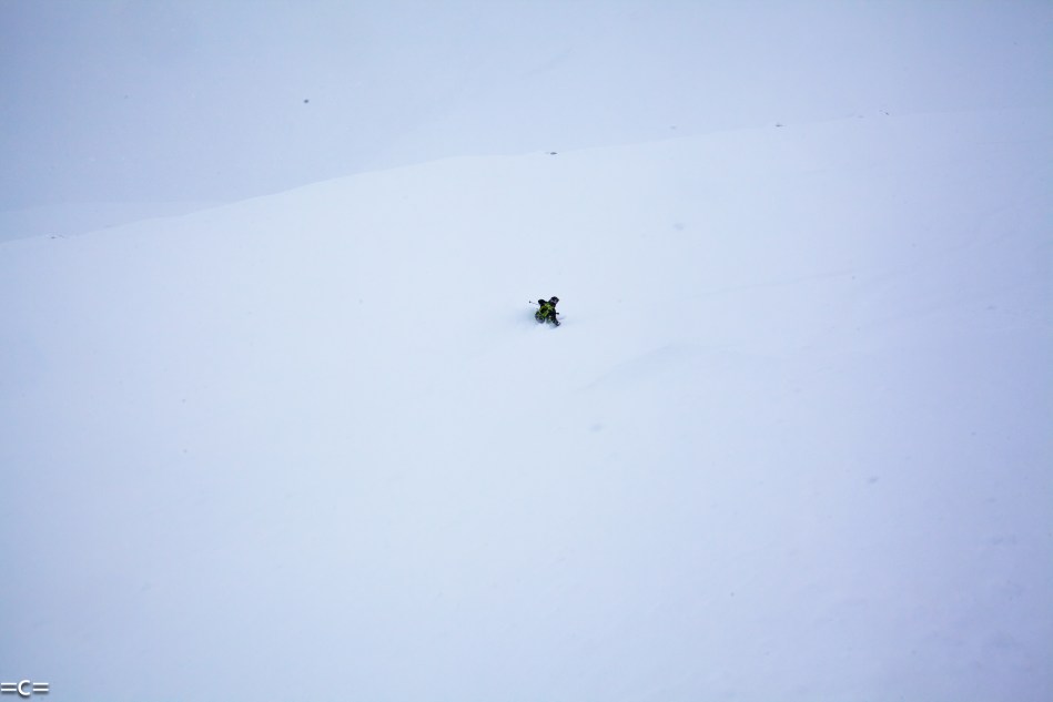 Dropping there is a very special moment. it is a very intense,unusual time. Everything looks huge and brutal . you know you are in for a very long ski in a very wild and beautiful place.