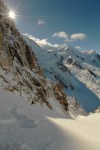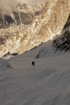 finally, after so long, i get to ski my be-loved run. I skied it only once last year and this is my first descent this year. And oh lord did i feel like a virgin. All sweaty and shy. So for the betas, i think you could ski straight down from the middle, it looked good. But the little shy virgin that i am then opted for the safest hardest not slabby skier left ridge. It was nice anyhow, grippy with some good pow turns here and there..some slippery ice which kept me in focus …the exit couloir was variable: deep pow turns mixed with some crusty ones. Nice skiing. very conservative. we decided to go down the bosson, where the glacier just collapsed entirely on the traverse back to the moraine. which left massive balls of ice you have to ski over while looking at the very threatening tongue of the glacier. then the way back to cham is very good EXEPT those fuckin dogs. OK! now, (rant) wtf. one sounding irish dude nicely asked us to take our skis off to traverse the dog shit town so the fuckin dog wouldnt bite us. Ok, fine, we had a good day, no need to argue here , we proceeded. I can t wait for the March daily rush hour. And why do those people have so many fuckin dogs. and why do they let them shit on their bed. this is gross. so retarded. I lived in a van for 5 years, it was the best time of my life, off the grid , alone, and no fuckin dog barking….so far from this dogshit town situation…