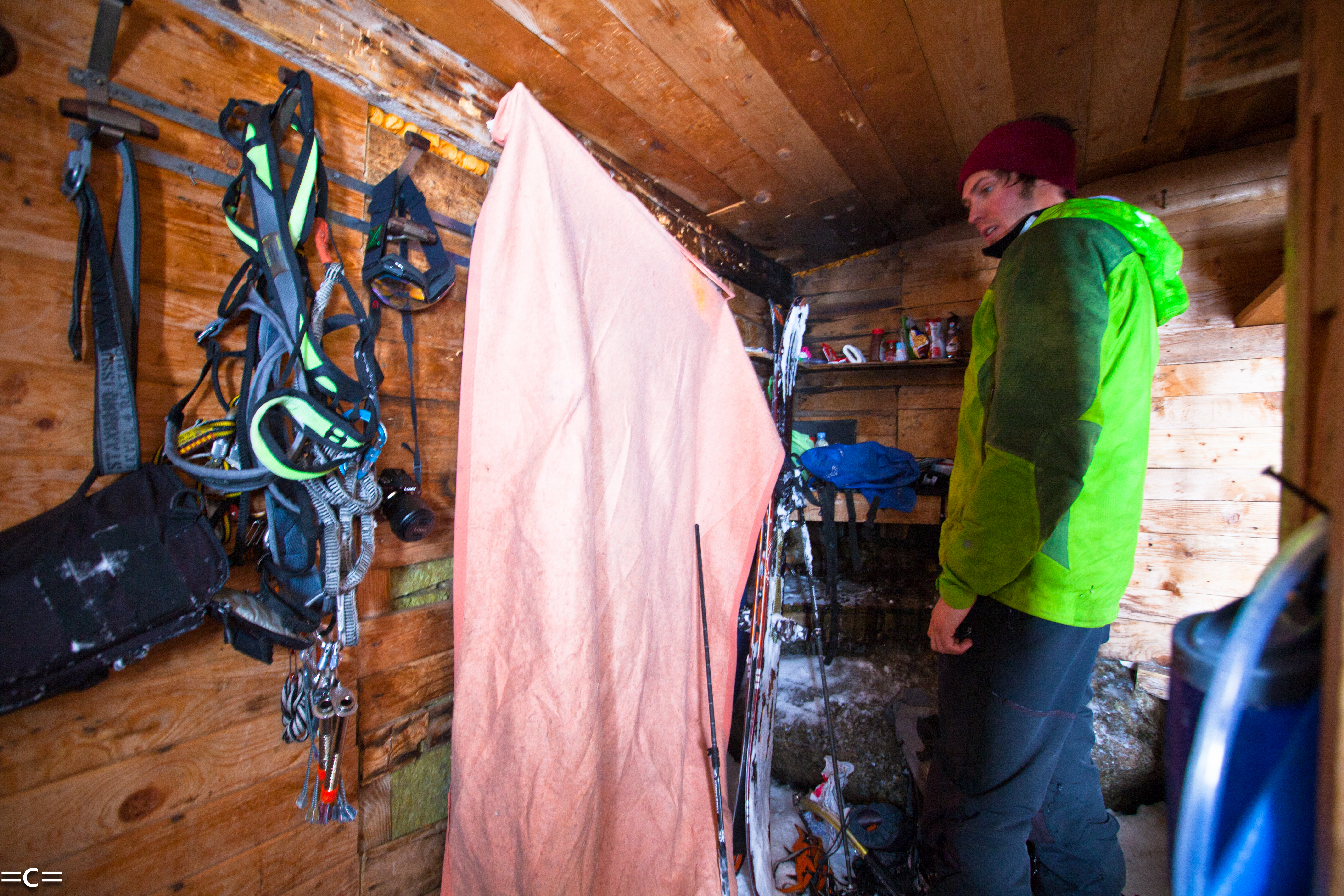 This is the old perroux hut , it needs some fixing : the door is broken and other stuff. it needs blankets as well. And since “the compagnie du mont blanc” doesnt want any dirty alpinists in the hallway , it could disturb the japenese/chinese/ indians watching a movie on alpinism…we might have to spent some time in there…