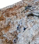 If the words : slabs, traverse, roof are frightening to you. beyond reason: you should go there. It will be fun. 250 meter of slabs. open by Piola. and if it is too easy add some wet-ness into the equation . The rock is so good that if you can give it up, if you can balance your all life on that one little coffee spoon dish or crystal or what ever they call a hold then you will realize it is holding you and start to commit to the next move. and again and again and again …Of course i did not lead anything and i was cussing and puffing. i had fun. My next step is to find a tarantula and lick her ass.