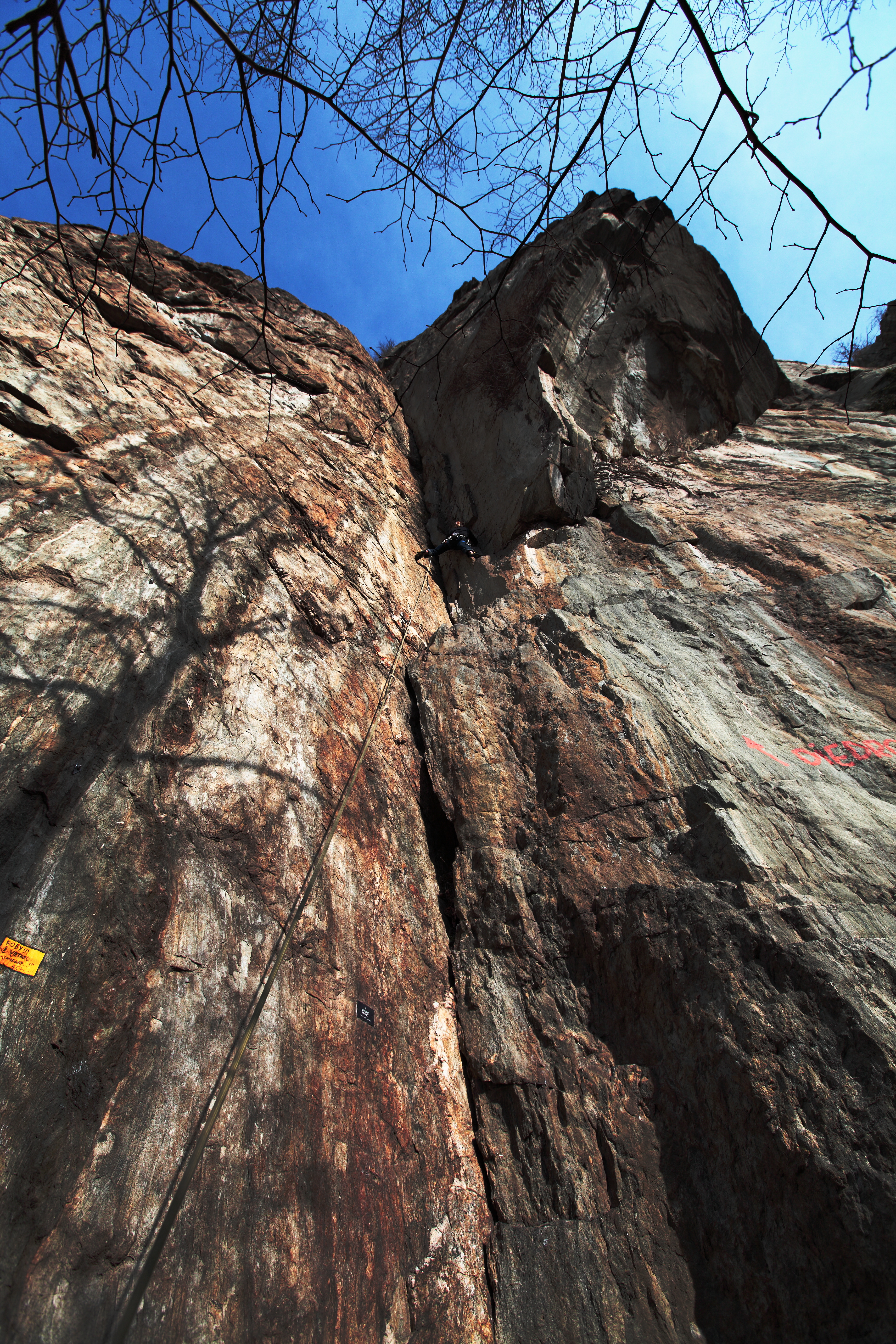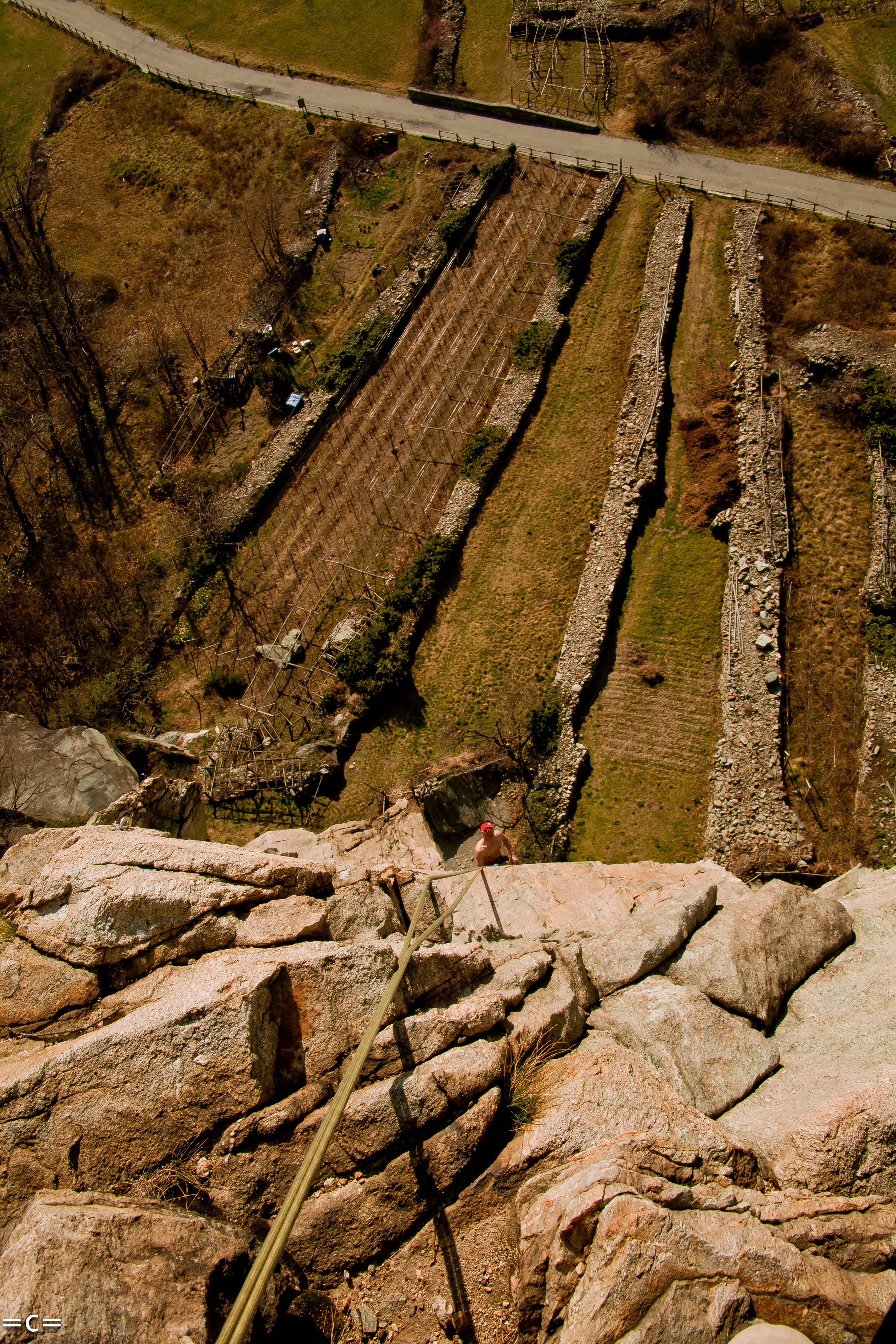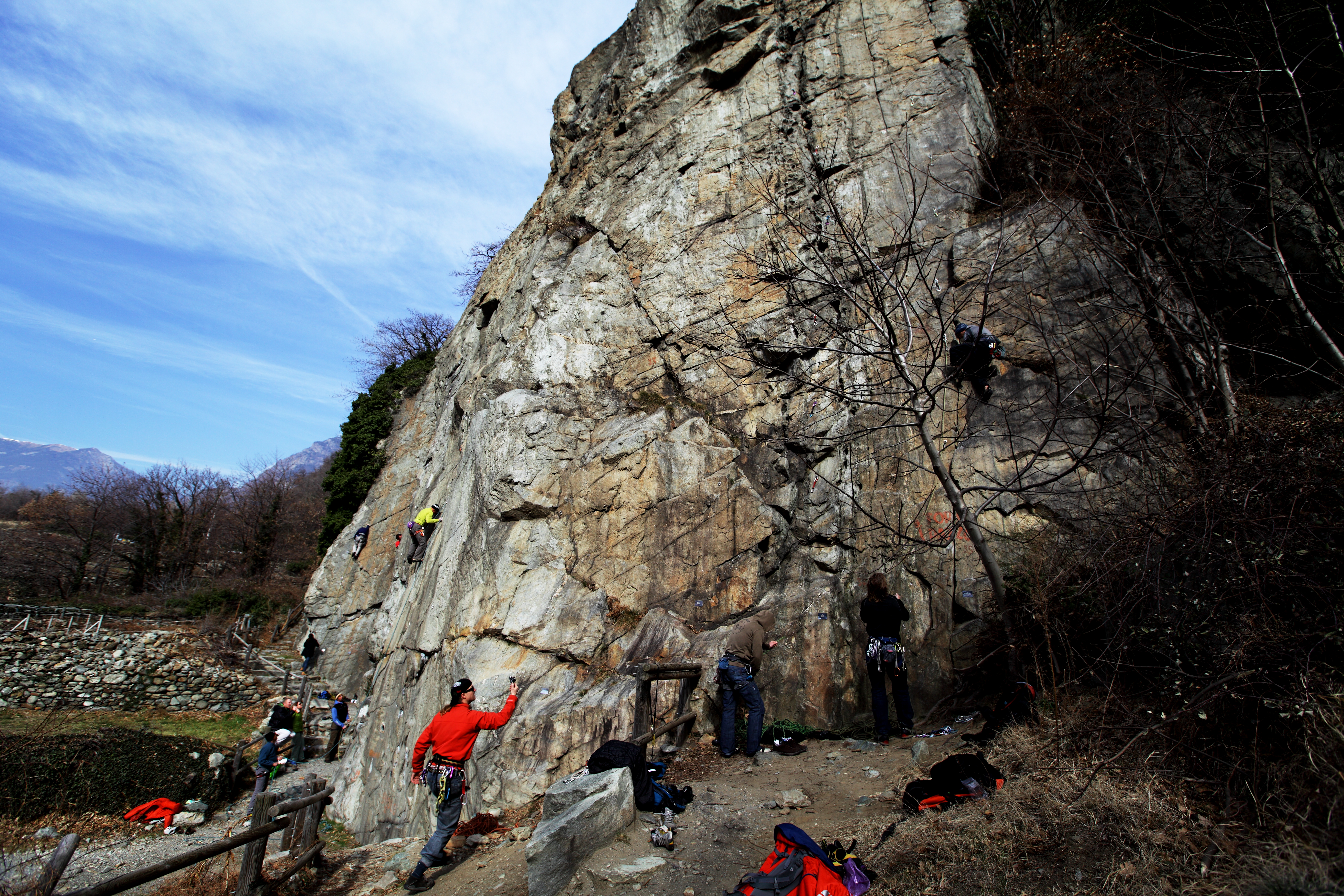 It is nothing less but delightful to go bolt clipping nice granit type rock in the middle of the Italian Vinyard.mid winter. A luxurious day of sort.