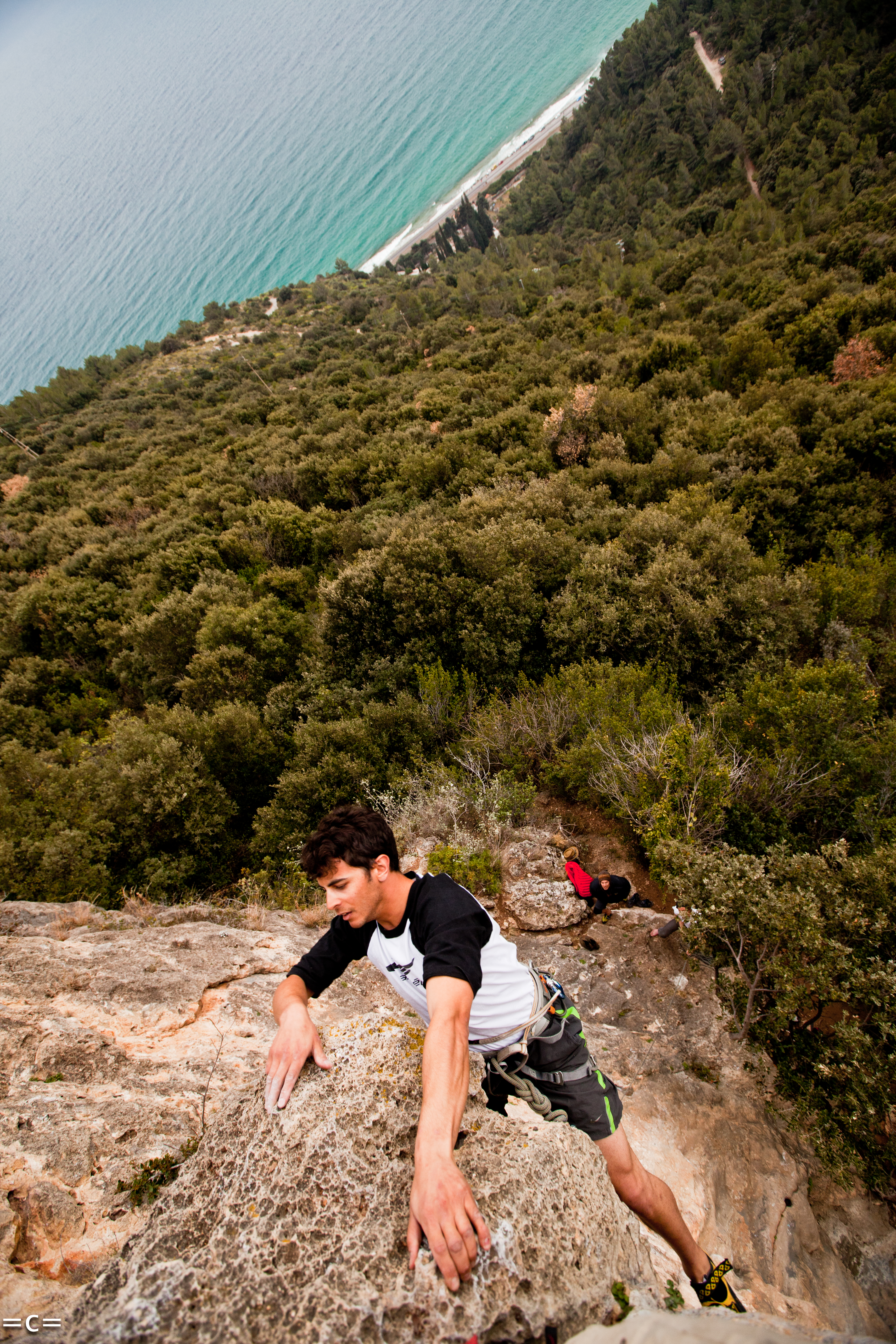 I crashed a party in Finale ligura, forcing myself into Kristy shelley’s car. The skiing in cham wasnt that good and storm were looming. I had never been to finale so it was a good way to go. Finale climbing is the mecca for sport limestone climbing and it is steep and sharp and steep. Luckily my new best friend rope gun hero Bryan Schneider was here to get the rope up some heinous yet beautiful 6c-6c+…awesome!. I love climbing with a sea view. then, well…THEN, the party. the down side of having a big camera is you dont take it all the time. I missed the finale debauchery ice skating drinking shenanigan. BUT, here tom grant ice skating. he wins.