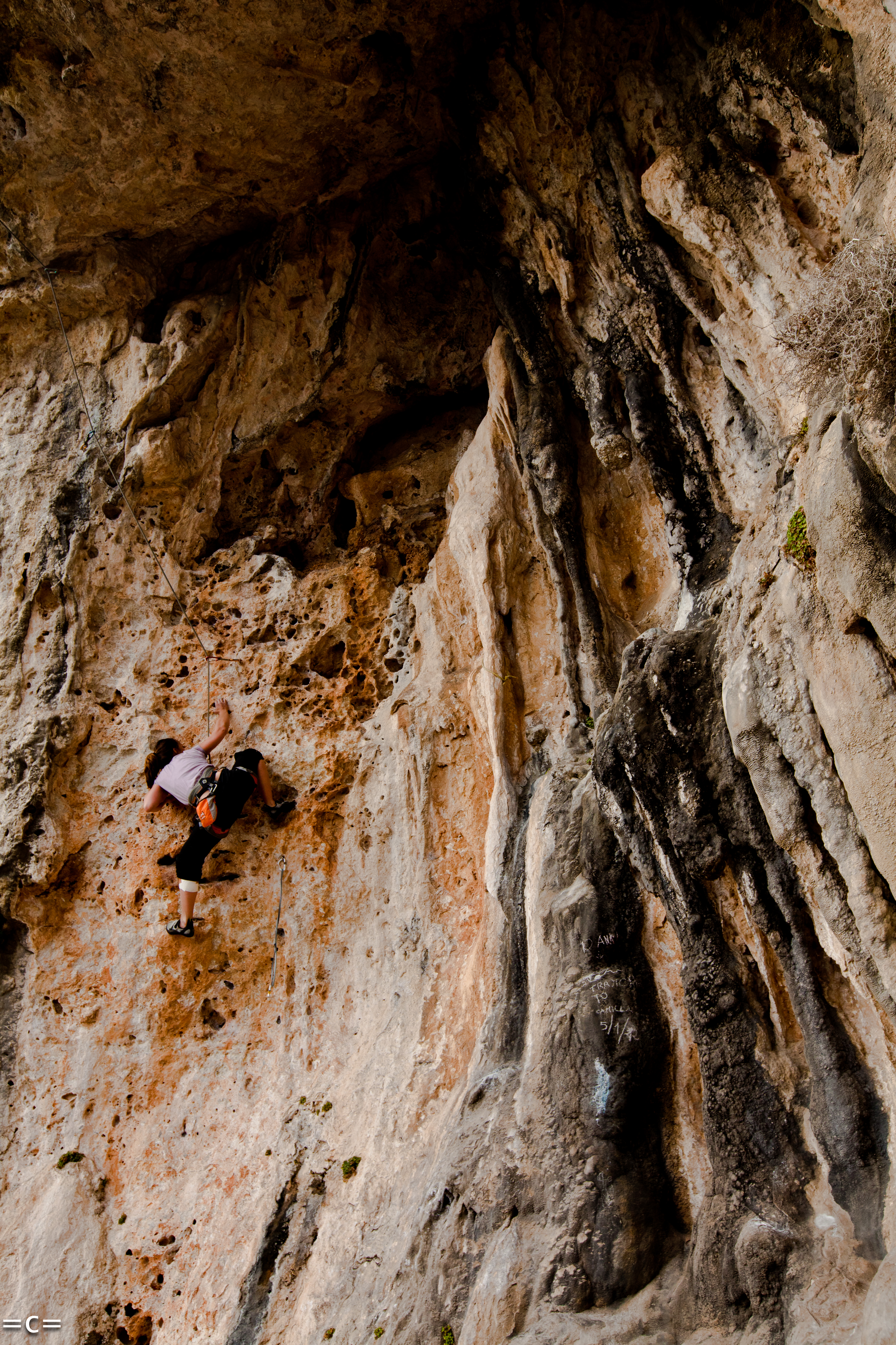 If the words : slabs, traverse, roof are frightening to you. beyond reason: you should go there. It will be fun. 250 meter of slabs. open by Piola. and if it is too easy add some wet-ness into the equation . The rock is so good that if you can give it up, if you can balance your all life on that one little coffee spoon dish or crystal or what ever they call a hold then you will realize it is holding you and start to commit to the next move. and again and again and again …Of course i did not lead anything and i was cussing and puffing. i had fun. My next step is to find a tarantula and lick her ass.