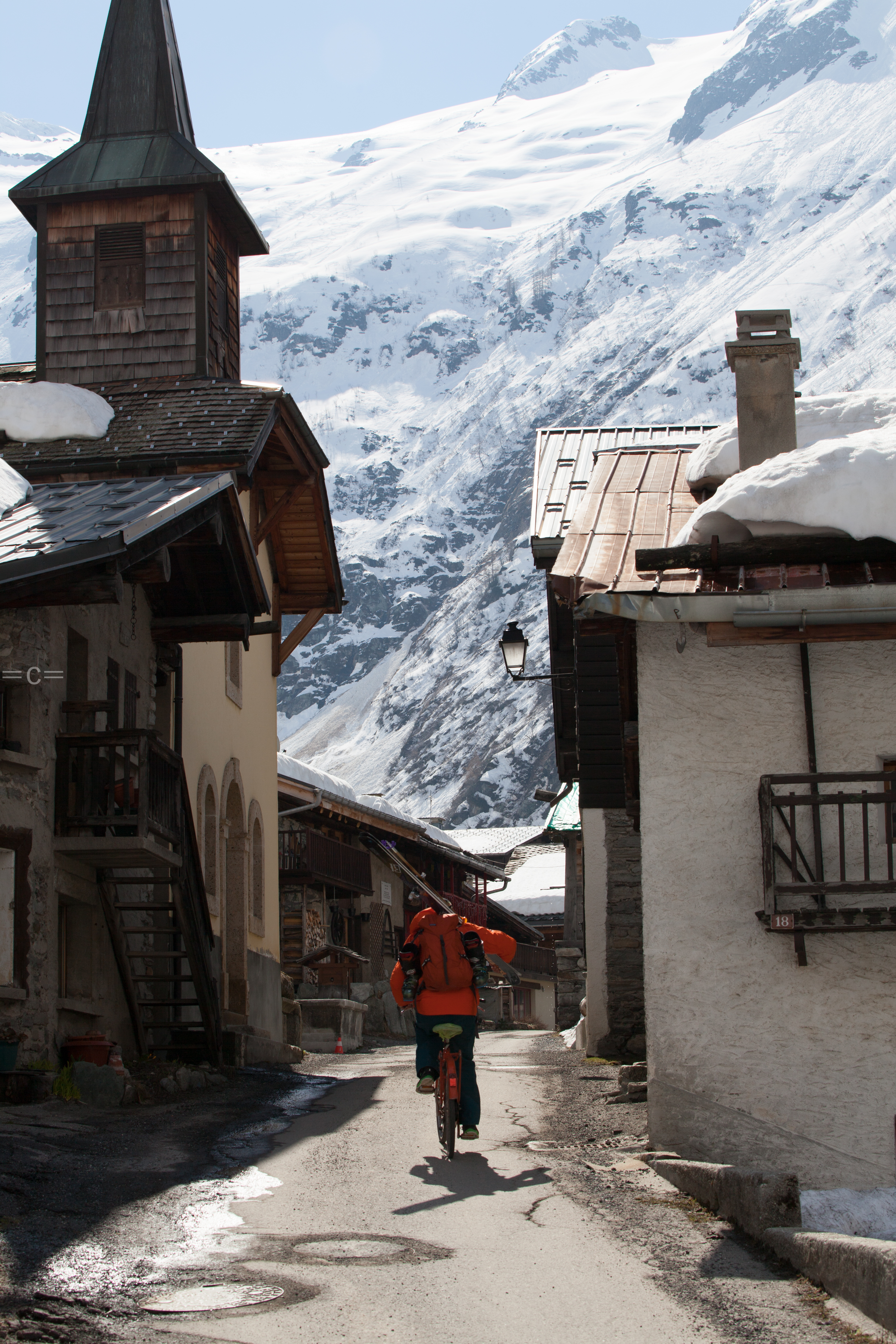 biking to ski in “le tour”, france.
